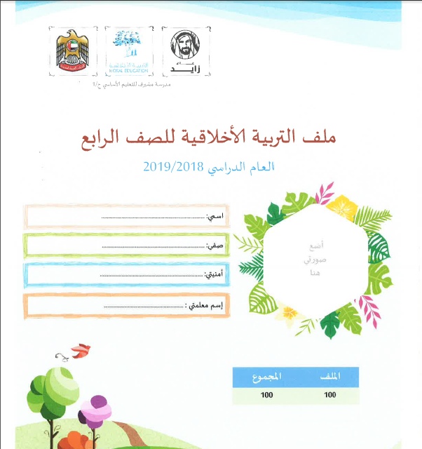 ملف انجاز في التربية الاخلاقية للصف الرابع الفصل الدراسي الاول